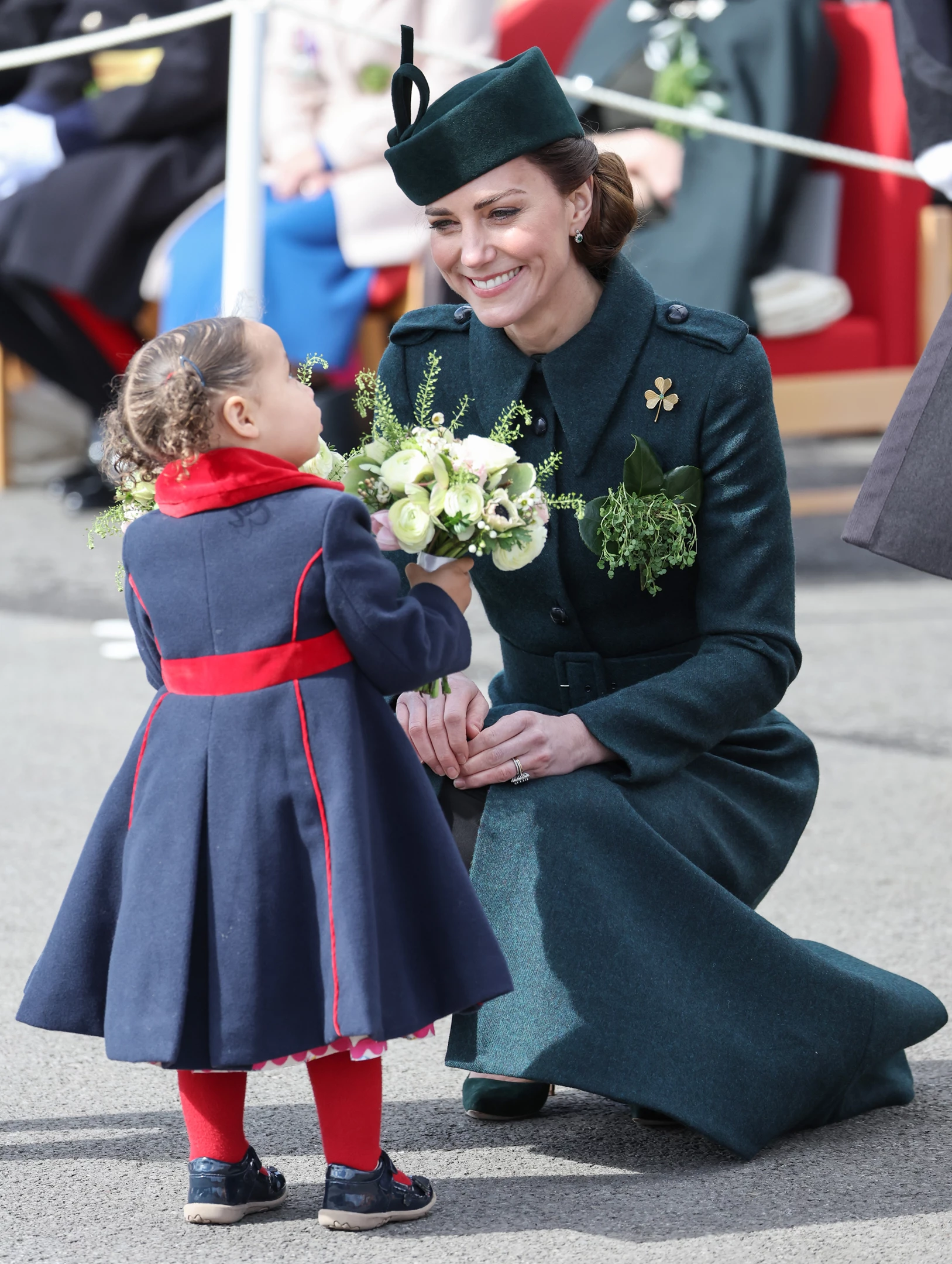Η Kate Middleton επένδυσε για την επίσκεψή της σ' ένα λευκό t-shirt κι ένα cargo skinny παντελόνι σε λαδί χρώμα από τη συλλογή G-Star RAW, ενώ στη μέση της φορούσε μια δερμάτινη woven ζώνη. Το outfit της ολοκλήρωσε μ' ένα ζευγάρι λευκά sneakers Superga κι ένα διακριτικό ζευγάρι χρυσούς κρίκους από το Spells Of Love, ενώ τα γυαλιά της ήταν και πάλι Ray-Ban. Η αλλαγή που έκανε για να συναντήσει τα μέλη του βρετανικού στρατού στο δάσος ήταν να προσθέσει πάνω της ένα safari shirt σε μπεζ χρώμα από το Scotch & Soda, ενώ αντάλλαξε τα λευκά της sneakers μ' ένα ζευγάρι χακί μπότες Palladium.