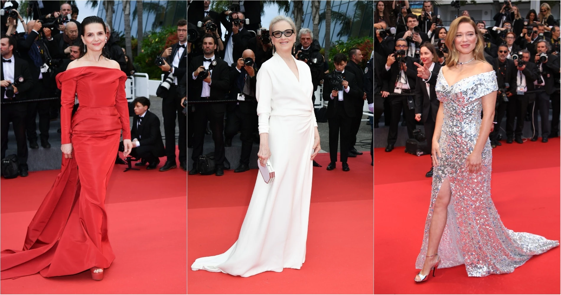 Η Meryl Streep εμφανίστηκε vacation ready στο δικό της photocall ντυμένη μ' ένα λευκό κοστούμι και ριγέ πουκάμισο του Michael Kors, το οποίο συνδύασε με ασημί γόβες, μαύρα γυαλιά ηλίου και ψάθινο καπέλο. Στο ίδιο πνεύμα, η Lily Gladstone φόρεσε ένα λευκό shirdress του Gucci που ανέδειξε με μια λεπτή ζώνη και πλατφόρμες του οίκου σε rosso ancora, αλλά και statement σκουλαρίκια, ενώ η Léa Seydoux μας θύμισε ότι φέτος είναι η χρονιά που θα φορέσουμε capri παντελόνια με το δικό της look στο photocall, ένα sharp κοστούμι σε navy blue με cropped παντελόνι που συνδύασε με μπλε γόβες.