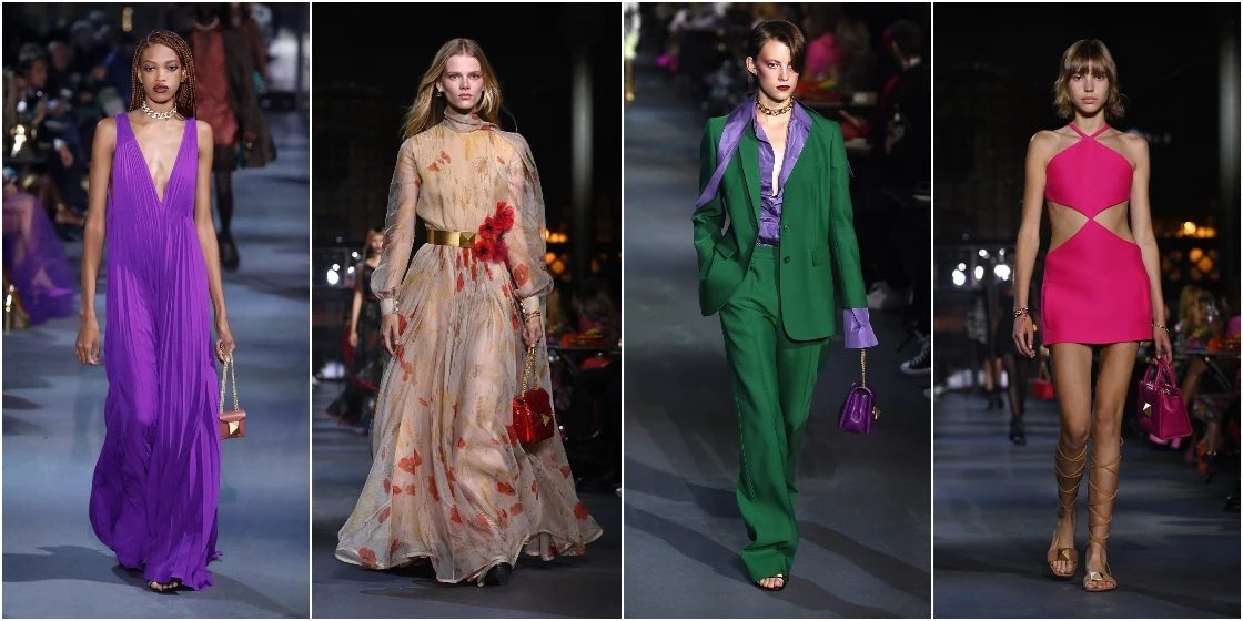 Τα φτερά επιστρέφουν ως μία signature ταυτότητα, οι εντυπωσιακοί όγκοι σε φούστες και μανίκια διαδέχονται τις αέρινες σιλουέτες σαν μια ακόμα υπενθύμιση συμπεριληπτικότητας (σε φόρμες και γραμμές), τα βολάν δείχνουν ανάλαφρα ακόμα και όταν καλύπτουν ολόκληρη την έκταση ενός ρούχου και τα θεαματικά headpieces προσφέρουν μία νότα χαλαρού εκκεντρισμού. Τα looks της Valentino The Begging, ωστόσο, έχουν ένα ακόμα χαρακτηριστικό που ανταποκρίνεται και στην "πολιτική" διάθεση του δημιουργού τους και την τάση – απαίτηση της εποχής για gender fluidity: οι άνδρες μοντέλα εμφανίζονται με κομμάτια που θα μπορούσαν να φορεθούν από γυναίκες, ενώ σε μία iconic στιγμή της πασαρέλας στα σκαλιά το μοντέλο Timothé Doménico με τα μακριά ροζ μαλλιά εμφανίζεται φορώντας ένα κίτρινο σιφόν πλισέ φόρεμα με βολάν.